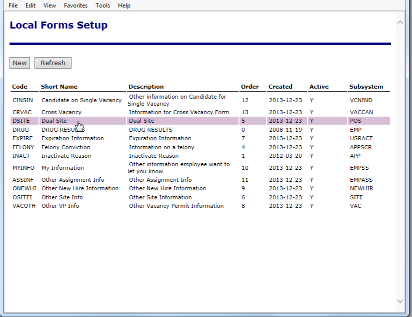 Local Forms created for the New Hire (NEWHIR) subsystem are available on the