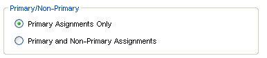 various Standard Reports. It is used to include information for either primary assignments only or for both primary and non-primary assignments on the report.