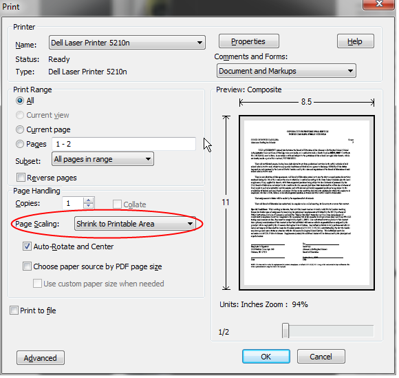 Unfortunately with some printers, contracts print with a margin less than 1/2 inch.